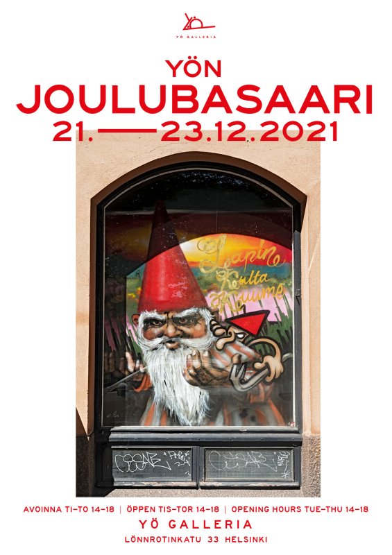 Want to find something different to decorate your home for Christmas? Delight a friend with a gift that will last? Be part of supporting culture and the artists in our association? Welcome to the Yö Christmas Bazaar organized by Artists’ Association Yö ry at Yö Galleria! At the gallery you can discover art for yourself or as a gift, and get to know the artists personally.