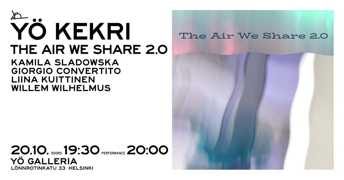 The Air We Share 2.0 organizes events where live artists from various art fields come together to present their work and collaborate with each other. It is an experiment in creating live art forms oscillating between individual and collective actions.