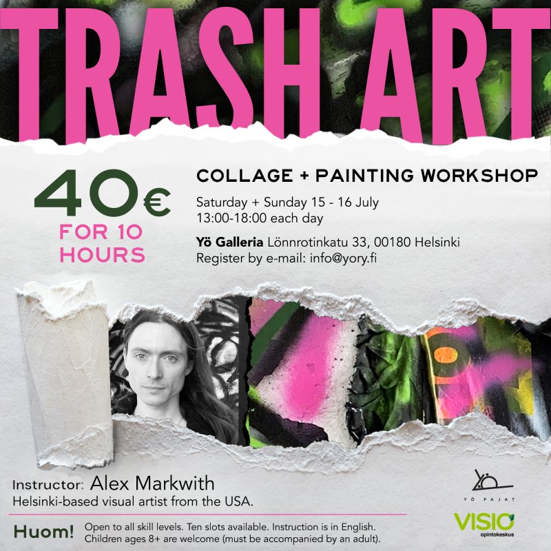 For this workshop we will explore painting and collage via found "trash" materials. Participants may bring their own old magazines, cardboard packaging, plastic bags, fabric, or anything else that is not too "precious" that we can cut up, paste together and paint on top of. Participants may work individually or collaboratively to construct their own artwork. We will question ideas about "good" and "bad" art.